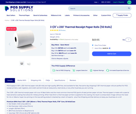 POS Supply Solutions sells all sorts of supplies, like paper rolls and ribbons. They were giving their brand a big refresh, and their old NetSuite e-commerce site (SuiteCommerce) just didn’t match their cool new identity anymore.